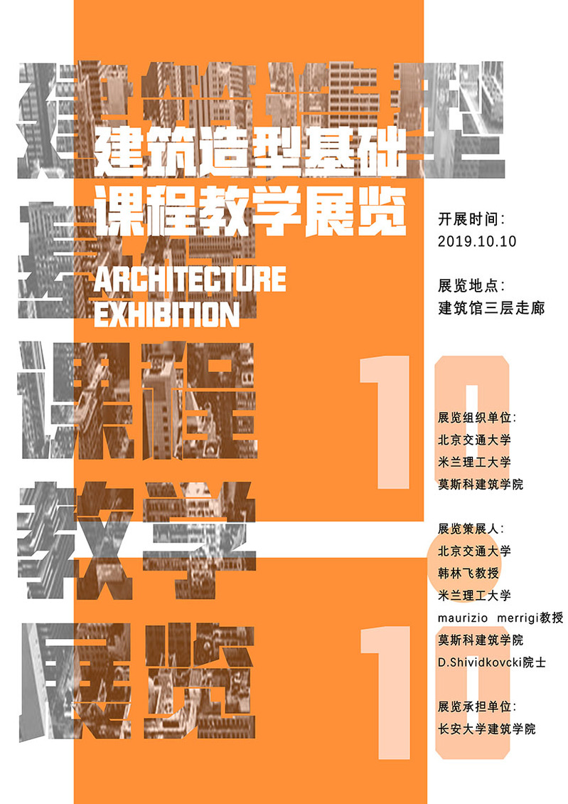 The exhibition is jointly organized by Beijing Jiaotong University, Milan Polytechnic University and Moscow Institute of Architecture. The curators are Professor Han Linfei of Beijing Jiaotong University, Professor Maurizio Merrigi of Milan Polytechnic University and Academician D. Sividkovcki of Moscow Institute of Architecture. Contents of the exhibition are the important teaching results of the basic architecture courses jointly produced by Moscow Architecture Institute, Milan Polytechnic University, and Beijing Jiaotong University.
