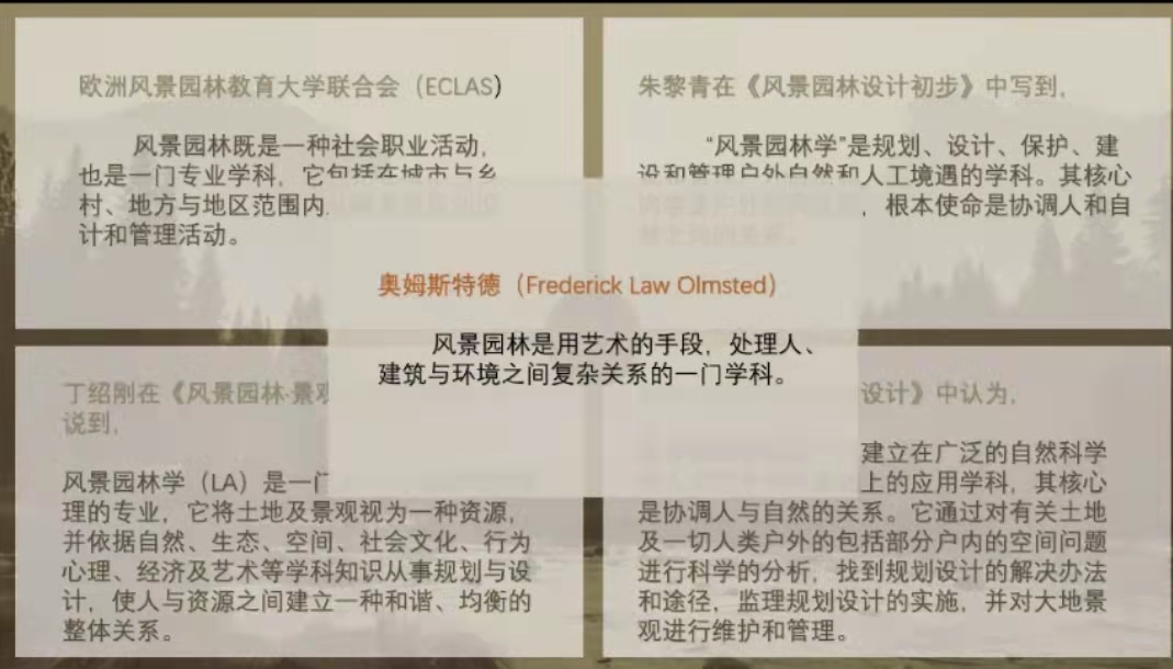 2020级冉茂莎同学为我们介绍了风景园林的相关内容。冉茂莎同学幽默地说到,风景园林并不只是简单地“种树”,而是用艺术的手段,处理人、建筑与环境之间复杂关系的一门学科。相比较于建筑学和城乡规划,风景园林更具浪漫性。她谈到,要想了解一个学科的发展前景,要多跟老师沟通并广泛收集资料,多多益善。接着,冉茂莎同学简单介绍了风景园林专业的就业方向,包括规划设计研究院、园林规划设计公司、房地产类公司等。