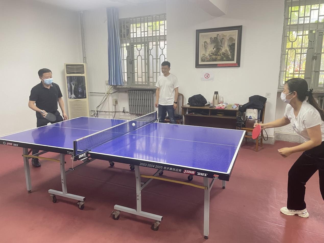 会后,校工会与澳门新葡京平台 行政实验党支部进行了乒乓球联谊赛。