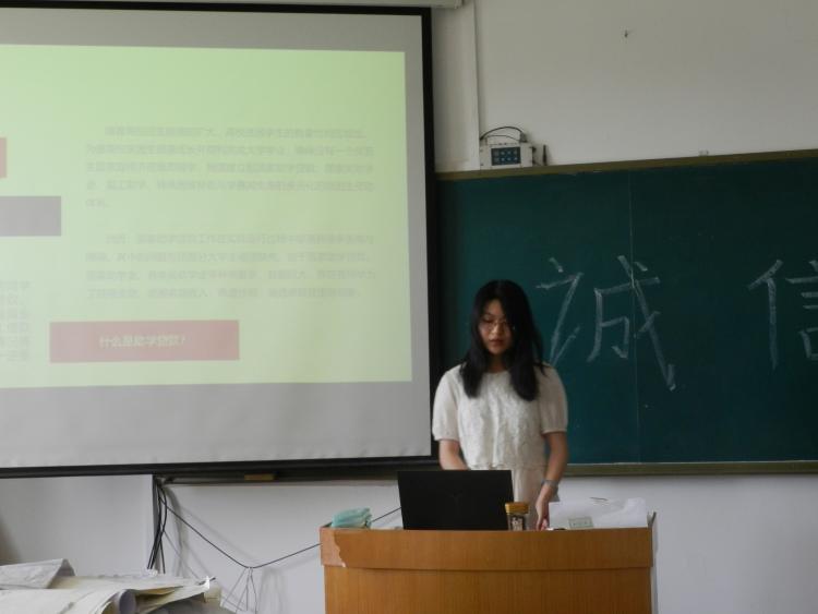最后,是基础知识学习环节,团支书张懿同学带领大家进行“诚信与资助”主题学习。张懿同学依次从资助诚信、学术诚信以及生活诚信三个方面展开,为同学们讲述具体国家助学贷款流程、考试考规考纪、妨碍疫情防控工作后果等。