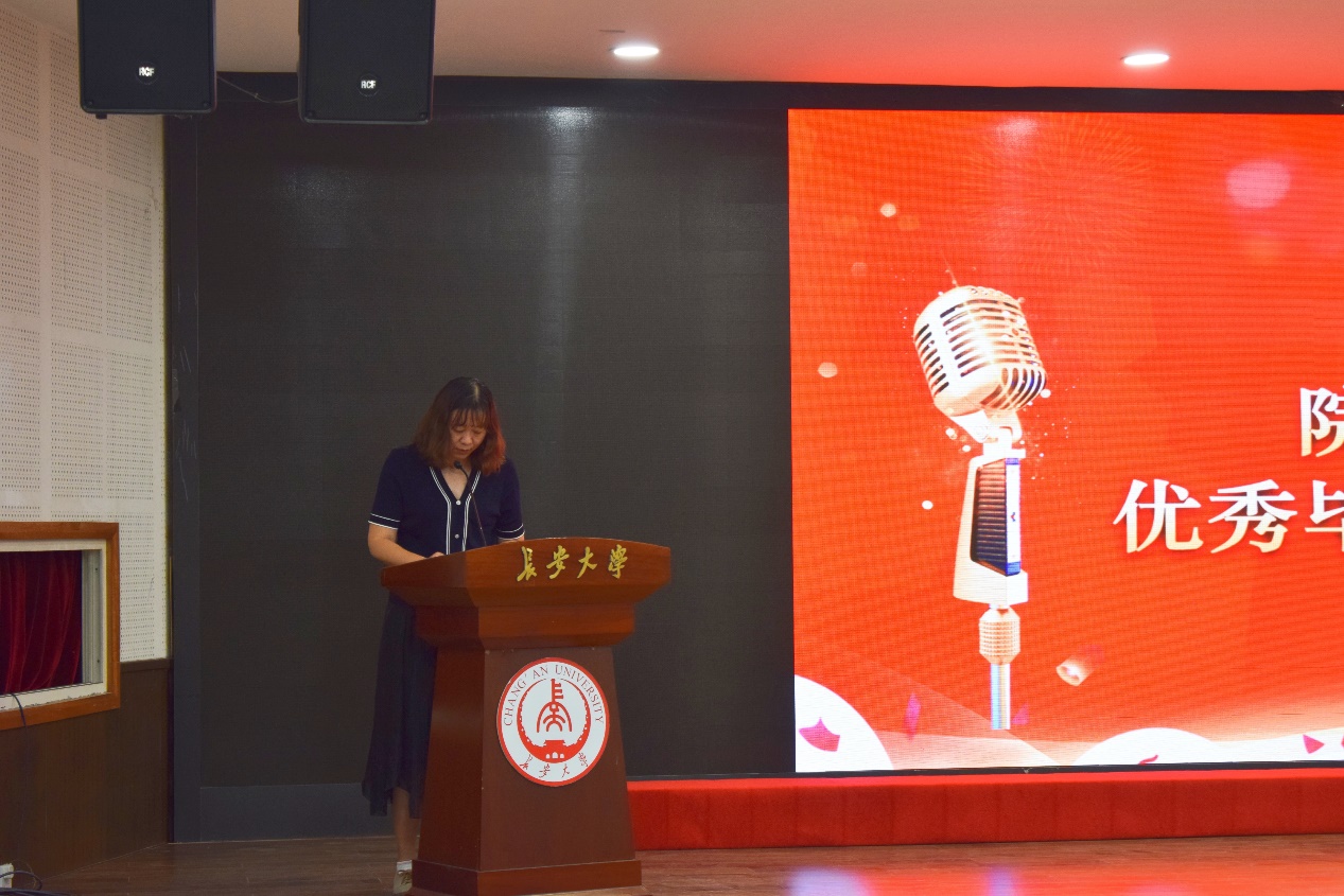 刘启波副院长宣读了陕西省教育厅办公室《关于表彰2022届陕西高校优秀毕业生和优秀学生干部的通报》和长安大学《关于表彰2022届本科优秀毕业生的决定》;我院金晨、白文琦同学分别获评“2022届陕西高校优秀毕业生干部”“2022届陕西高校优秀毕业生”,金晨和白文琦同学获评长安大学一等奖学金,汤赵琳等18名同学获二等奖学金。余侃华副院长宣读了长安大学《关于表彰2022届优秀本科毕业设计(论文)及指导教师的决定》,我院金晨等14名同学获评“优秀本科毕业设计”,侯全华等14名教师获评“优秀毕业设计指导老师”。