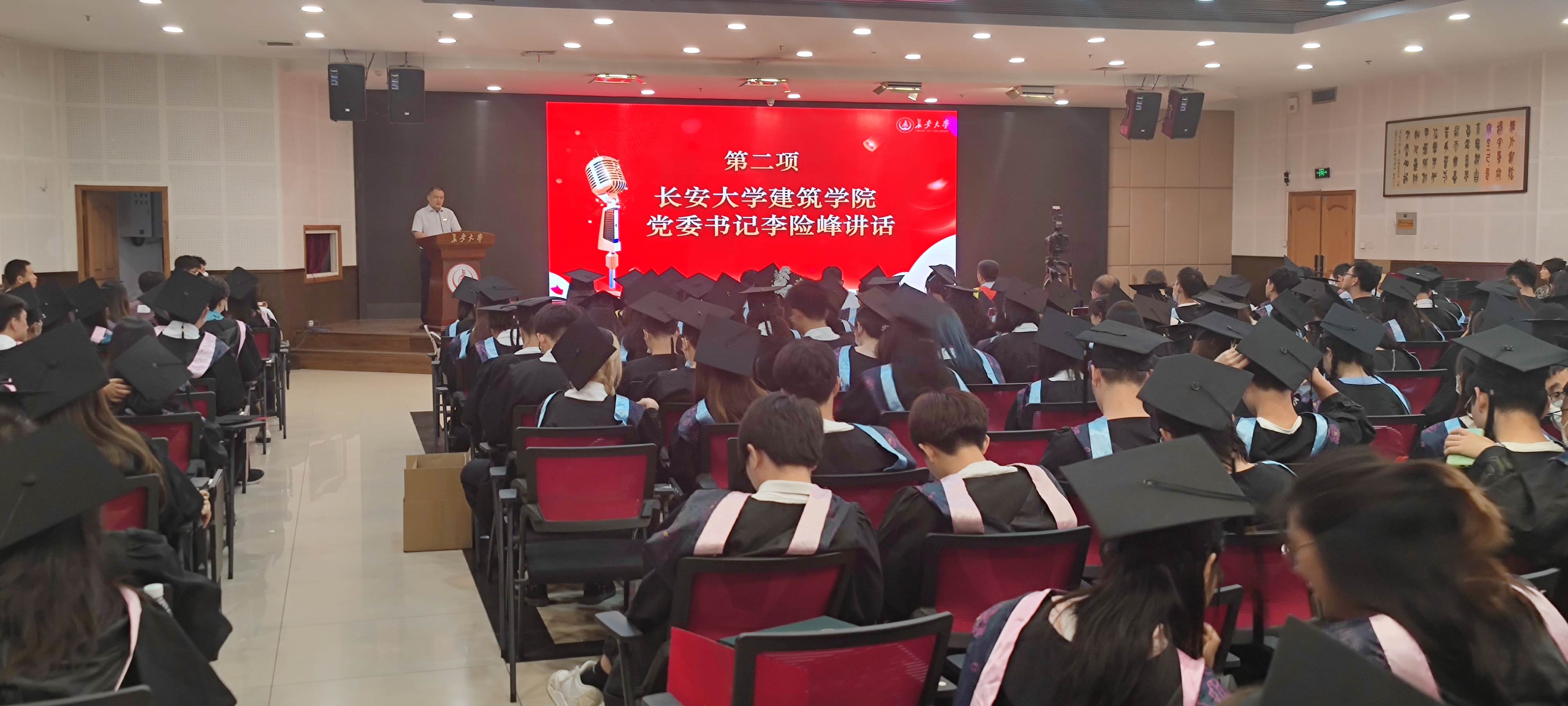 典礼开始,李险峰书记代表学院全体教职工对圆满完成学业的247名毕业生表示祝贺,他指出站在新时代的历史潮头,面对百年未有之大变局,在即将开启人生新征程时,希望2022届全体毕业生志存高远,坚守初心,把个人理想追求融入现代化强国建设的目标中;只争朝夕,不负韶华,与祖国同行,与时代成长,在实现中国梦的道路上留下闪耀的足迹;不惧风雨,勇于挑战,增强做中国人的志气、骨气、底气,努力成为可堪大任的时代新人。