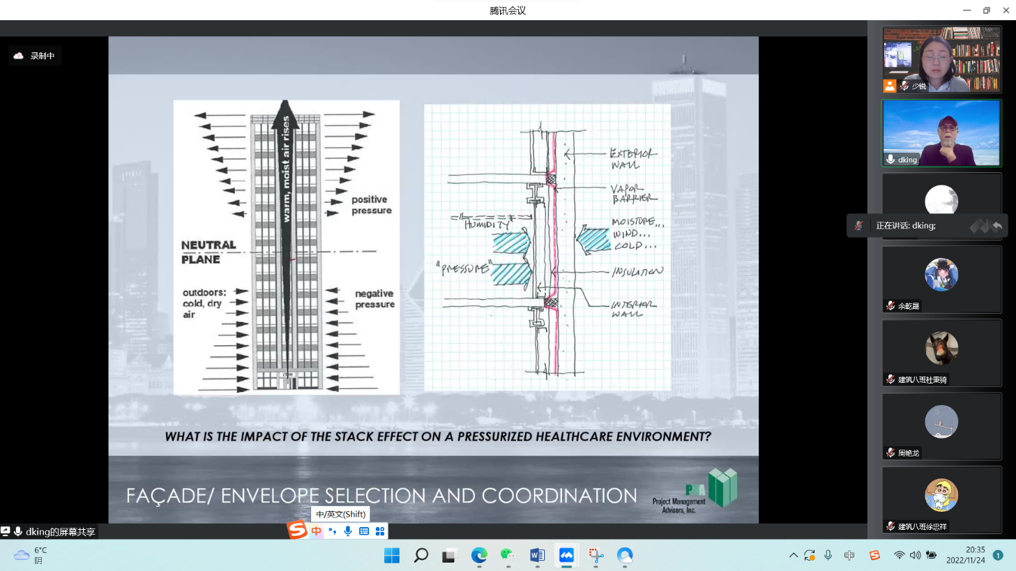 11月24日晚,澳门新葡京平台 为了激发我院学生对建筑专业学习的热情和兴趣,特地邀请了Douglas King先生进行了主题为城市高层垂直建筑的专题讲座——HIGH RISE URBAN HEALTHCARE。本次会议在腾讯会议线上举办,由余侃华副院长主持,我院王少锐老师、任娟老师、周艳龙老师及250多名学生共同参加。