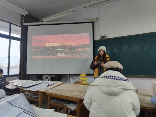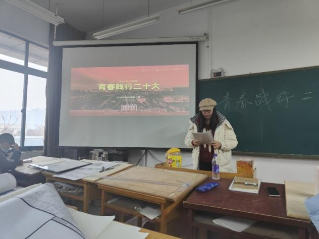 为全面贯彻党的二十大精神,迎接好新一学期的大学生活,2月23日晚,澳门新葡京平台 2021级建筑4班开展了“青春践行二十大”主题班会。会议由班长李佳玉同学主持,并邀请了班主任王少锐老师和辅导员李博轩老师。