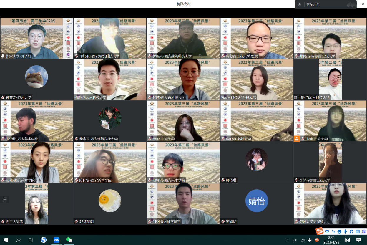 2023年4月22日上午,第三届“丝路风景”联合毕业设计中期答辩在线上拉开帷幕,来自西安建筑科技大学、长安大学、内蒙古工业大学、内蒙古科技大学、西安美术学院、苏州大学、西安理工大学7所高校50余师生参与本次活动。