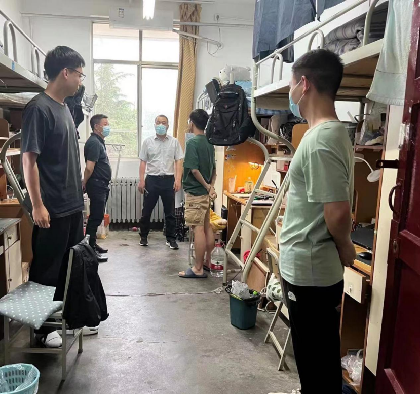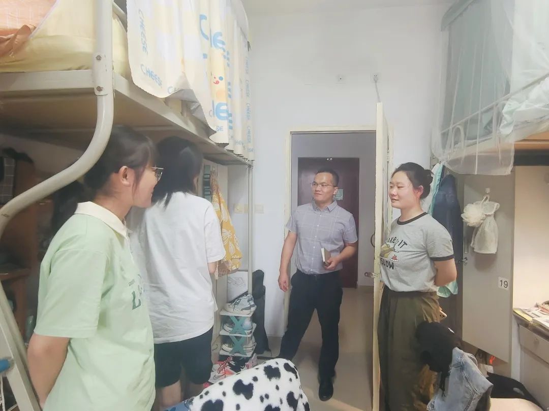 各位领导老师在走访检查过程中与同学们亲切交谈,询问了大家专业学习情况、考试就业情况,认真倾听同学们的实际情况和需求想法;提醒同学们要特别注意宿舍安全,保持宿舍卫生整洁,养成良好的学习生活习惯,注重劳逸结合,早睡早起,努力营造安全整洁的学习生活环境。最后,各位领导老师还叮嘱大家要不断提升安全意识,规范自身言行,加强安全知识学习,共同助力建设文明安全的校园环境。