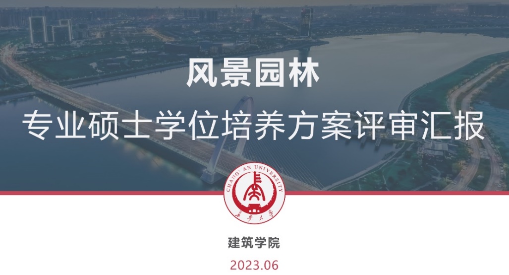 副院长白骅教授对我院风景园林专业硕士培养方案编制进行汇报,分别从学位点简介及培养目标、研究方向及课程体系、培养环节与过程管理和论文形式与质量保障四方面向评审专家组详细汇报。专家组在听取汇报、审阅相关材料的基础上,经深入讨论与质询,对长安大学风景园林专业硕士培养方案给予了肯定并一致通过该培养方案。随后重点从培养目标、课程体系及本硕学制等方面提出了优化建议,强调对标国家战略与行业人才发展的需求,明确风景园林专业的“科学”与“艺术”属性,突出“工程科学”与“创新设计”的思维能力培养,进一步强化学科专业特色的凝练。