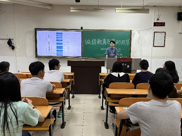 为大力宣传国家学生资助政策及其成效,充分发挥学生资助的导向和育人功能,激励同学们担当时代使命、奋发自强、成长成才,澳门新葡京平台 6月8日晚于wm1112教室开展“感恩诚信,助学筑梦” 诚信教育与资助政策主题宣讲会。会议由辅导员李博轩主持,社会奖助学金获得者以及学院全体勤工助学岗位的学生参加了会议。