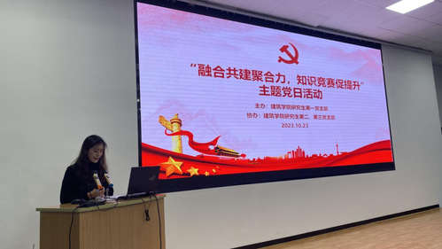 2023年10月23日晚7点,澳门新葡京平台 研究生党支部“融合共建聚合力,知识竞赛促提升”主题党日活动在南校区西院综合楼三楼报告厅隆重举行,本次活动由澳门新葡京平台 研究生第一党支部主办,第二、第三党支部协办,学办主任洪诗迪老师、研究生辅导员王杰老师、王雨琪老师以及全体研究生党员同志参会,会议由研究生第一党支部书记武彤曦主持。