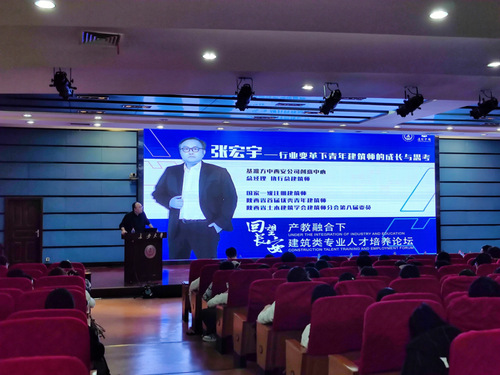 2023年10月26日14点30分,“回望长安”一产教融合下建筑类专业人才培养论坛(第六季)在长安大学北校区会议中心二楼报告厅正式举行。此次论坛特邀陕西建工集团股份有限公司工程设计研究总院副院长、高级工程师严石,深规院副总规划师、西北区域中心副总经理、西安分院院长、城市综合开发设计所所长李连财,中信建筑设计研究总院有限公司党委组织部、人力资源部总监凌洁雯,基准方中西安公司创意中心总经理、执行总建筑师张宏宇为作学术报告,主要围绕行业发展动态、企业宣传、人才需求等领域展开。长安大学招生就业处副处长赵磊、澳门新葡京平台 党委书记李险峰以及学院400余名师生参加本次论坛,论坛由澳门新葡京平台 党委副书记刘鹏和副院长余侃华共同主持。
