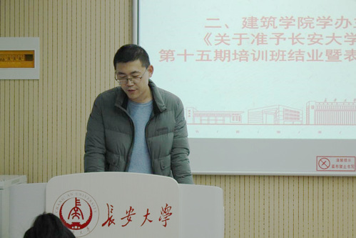 学院团委副书记谭宇老师宣读《澳门新葡京平台 青马班第十六期培训班管理及考核条例》,勉励青马培训班学生要有对自我的严格要求与学习内驱力。