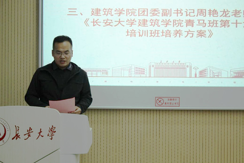 学院团委副书记周艳龙老师宣读《澳门新葡京平台 青马班第十六期培训班培养方案》,向学员们明确青马班学生骨干的培养目标、培养对象、培养时间和培养原则。