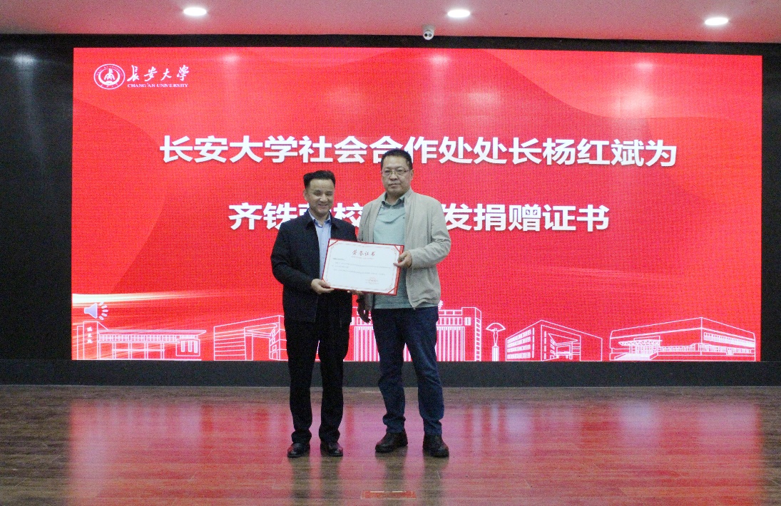 杨红斌在致辞中对齐铁营校友及各位嘉宾表示热烈欢迎和衷心感谢。他回顾了长安大学的发展历程,介绍了奖助学金的执行情况,高度评价了齐铁营校友心系母校发展、捐资助学的这一善举,希望广大学子常怀感恩之心,刻苦努力,以优异的成绩回馈校友的关心、帮助和支持。