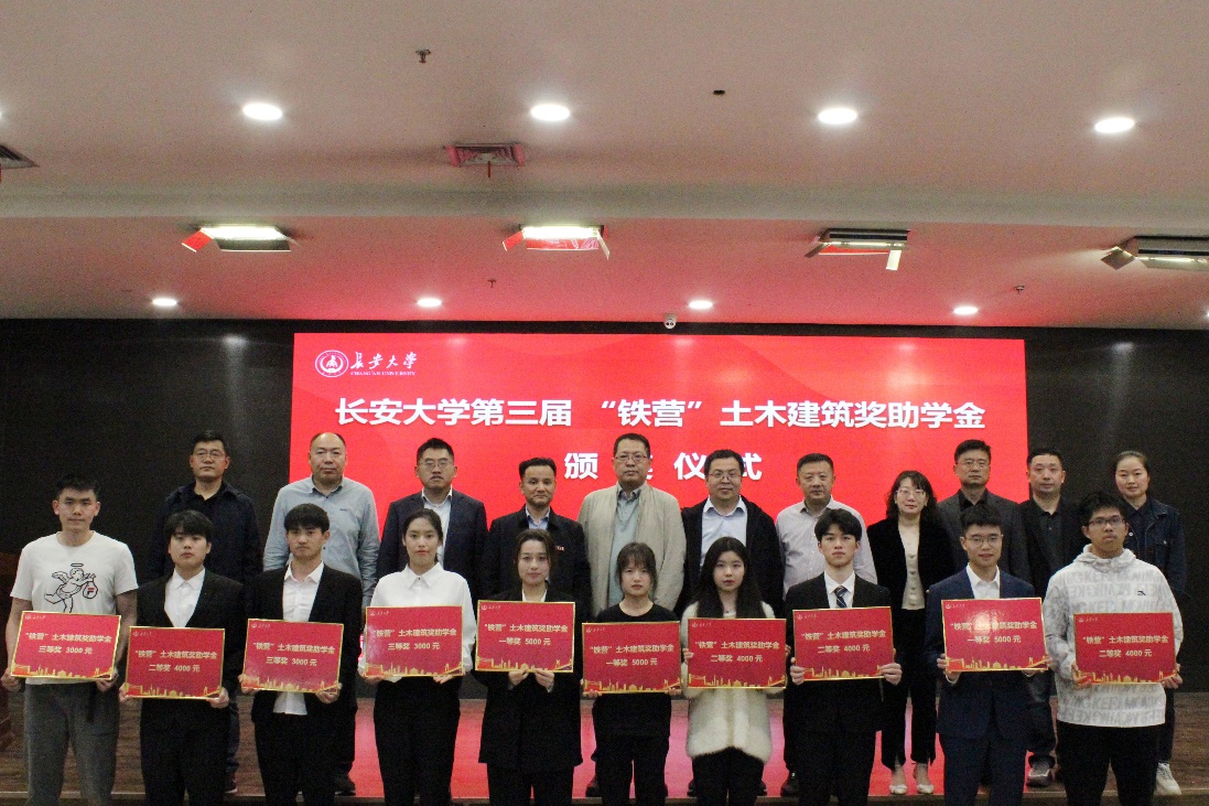 4月1日下午,第三届长安大学“铁营”土木建筑奖助学金颁奖仪式在北校区长安文化艺术中心三楼多功能厅举行。长安大学校友齐铁营,我校社会合作处处长、教育基金会理事长杨红斌、思创中心办公室主任郭云珠、学生资助中心副主任郭海丽、建筑工程学院党委书记吴涛、建筑工程学院院长邢国华、澳门新葡京平台