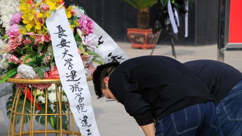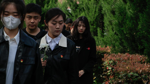 “党徽低垂,全党同悲”。怀着无比崇高的敬意,澳门新葡京平台 本科生、研究生党支部全体人员庄严肃立,集体默哀并向革命烈士纪念碑三鞠躬,后由党员代表向烈士纪念碑敬献花篮,向革命先烈表达深深的缅怀和哀思。