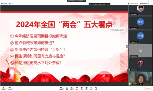 为深入学习贯彻2024年全国两会精神,澳门新葡京平台 学生会于4月23日晚在线上开展“两会”精神学习会。会议由学生会主席陈尔羽主持,全体学生会成员参加。