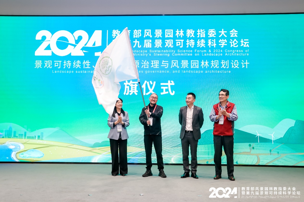 2024年5月10日至12日,南京农业大学承办2024年教育部风景园林教指委大会暨第九届景观可持续科学论坛。在次此大会期间由风景园林教指委全体成员集中讨论确定2025年教育部风景园林教指委大会暨第十届景观可持续科学论坛主题为“全球变化背景下的景观可持续性与风景园林教育”,并由长安大学主办。在接旗仪式中,白骅副院长作了长安大学简介及我校风景园林学科专业发展历程并成功接受会旗。