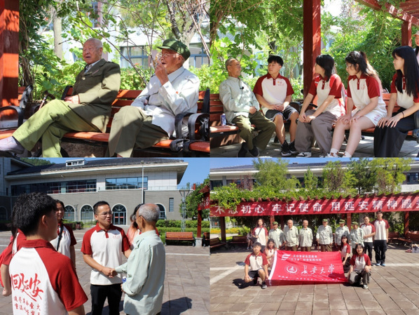 实践队员在八一敬老院听革命英雄讲述抗美援朝故事