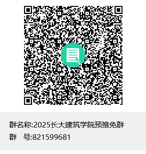 1. 请各位推免生于9月22日12:00前加入“2025长大澳门新葡京平台 预推免群”(群号:821599681)。加群时注明姓名+报考专业及编号+本科学校,相关通知及安排将在群中及时公布,群二维码如下: