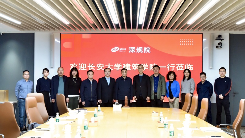 为深入贯彻落实党中央、国务院关于高校毕业生就业工作的决策部署,扎实推进教育部“访企拓岗促就业”专项行动要求,进一步加强校企协作交流,促进人才培养质量提升,拓展就业岗位资源,12月13日,长安大学党委副书记、纪委书记陶继东、澳门新葡京平台 党委书记贾侃、院长侯全华等一行八人赴深圳市建筑设计研究总院有限公司(以下简称:深总院)、深圳市城市规划设计研究院股份有限公司(以下简称:深规院)调研交流。深总院总经理章海峰,深规院党委副书记、总经理黄卫东和相关负责人参加座谈。