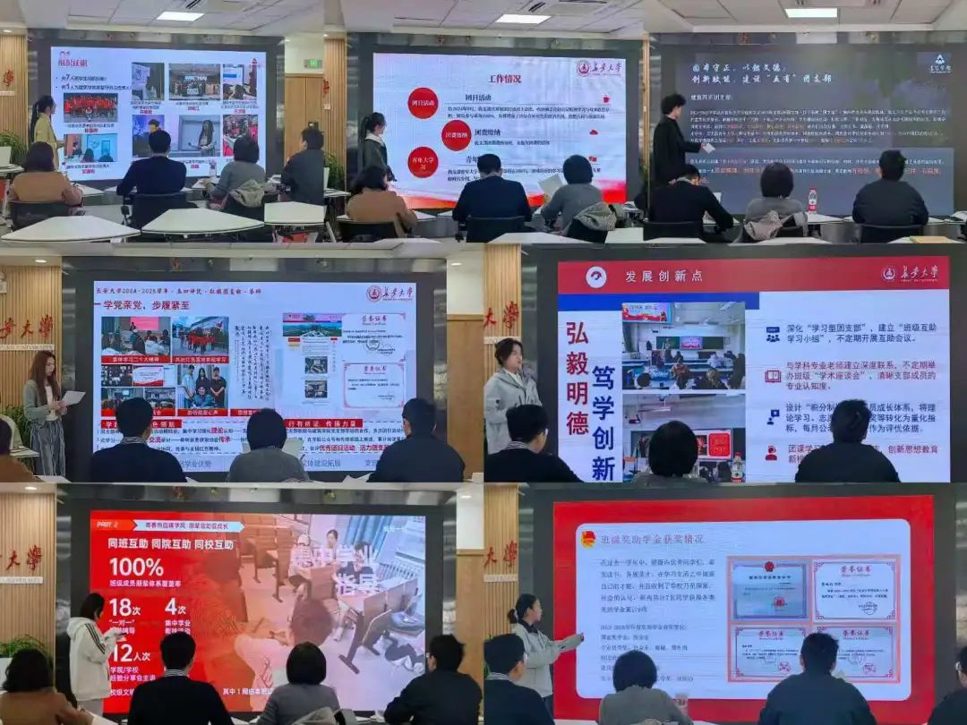 本次共有学院内不同年级11个团支部参与集体答辩,各团支书通过PPT展示与现场讲解,围绕思想引领、组织建设、学风建设、志愿服务、社会实践等多个方面,充分展示了各团支部的活力风采和建设成果。同时,评委老师们对各团支部的展示成果表达了充分的肯定,也进一步指出各团支部的现存不足并针对性地提出发展希望与建议。