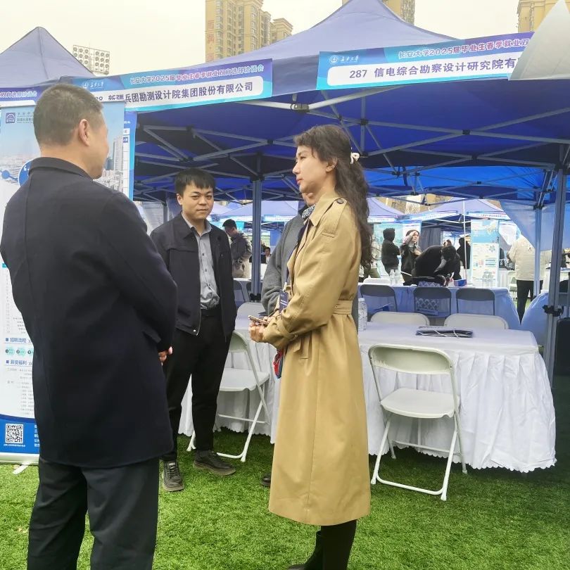 贾侃书记一行深入双选会招聘会现场,与中国建筑东北设计研究院有限公司、新疆兵团勘测设计院集团股份有限公司、中国建筑第八工程局有限公司上海分公司、山西省安装集团股份有限公司等用人单位深入交流,详细探寻各用人单位的岗位需求、培训体系、薪酬结构、职业前景、工作环境等用人信息,依托学院专业特色和学科优势,搭建校企合作桥梁,为毕业生和用人单位打通双向奔赴通道,建立人-岗精准匹配的有效路径。