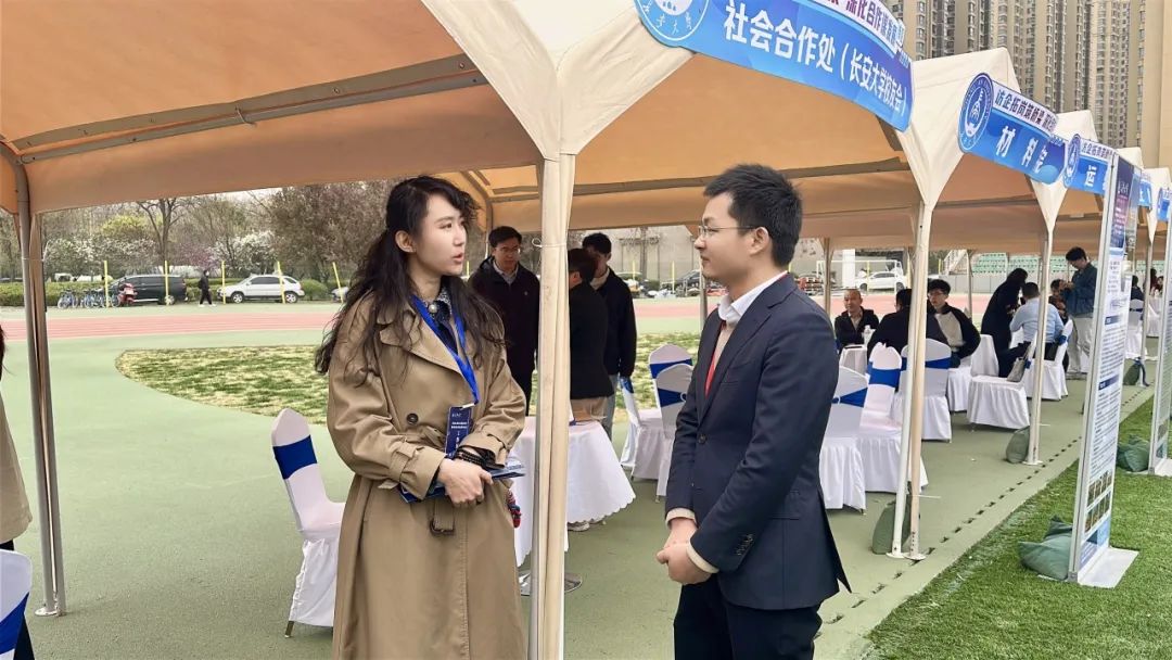 长安大学毕业生春季就业双向选择洽谈会(以下简称“双选会”)于2025年3月27日在北校区朝晖体育场举办,共550余家就业单位参会。为加强与各用人单位交流合作,进一步建立用人单位与毕业生的有效对接,澳门新葡京平台 党委书记贾侃、副书记王妍婷及毕业班辅导员老师参加本次双选会,积极开展访企拓岗工作。