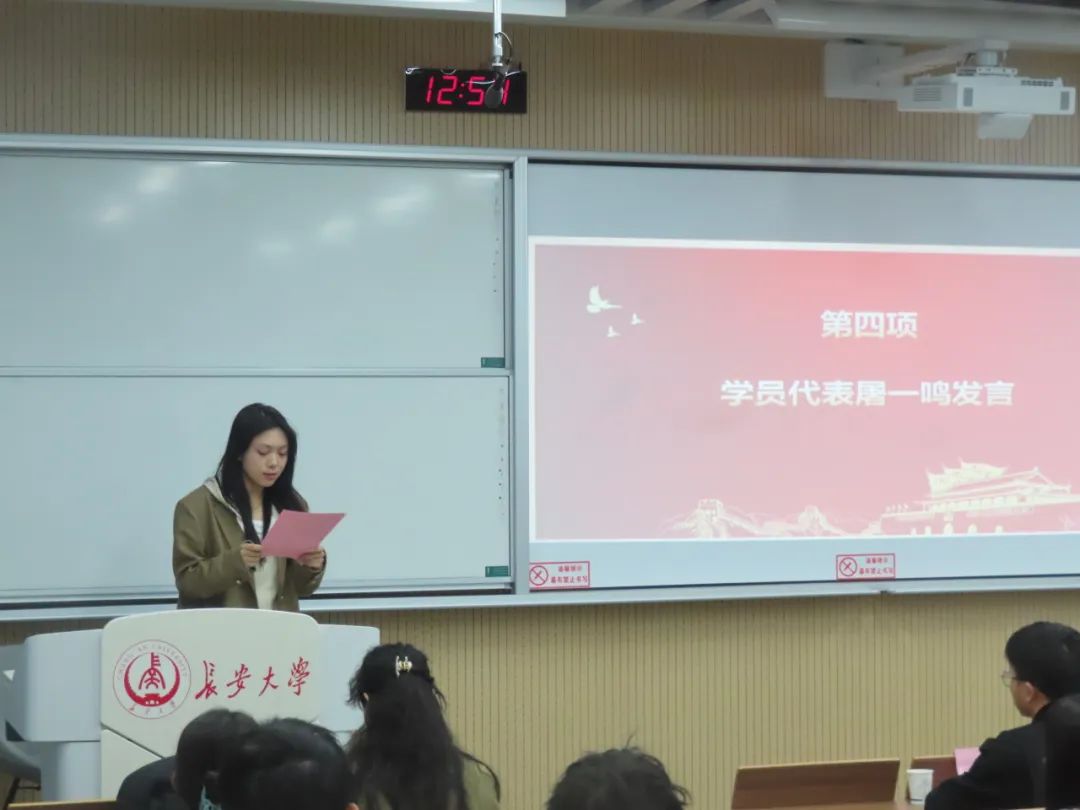 入党积极分子学员代表2023级屠一鸣同学发言,表示将严格按照共产党员标准要求自己,争取早日成为一名真正的共产党员。