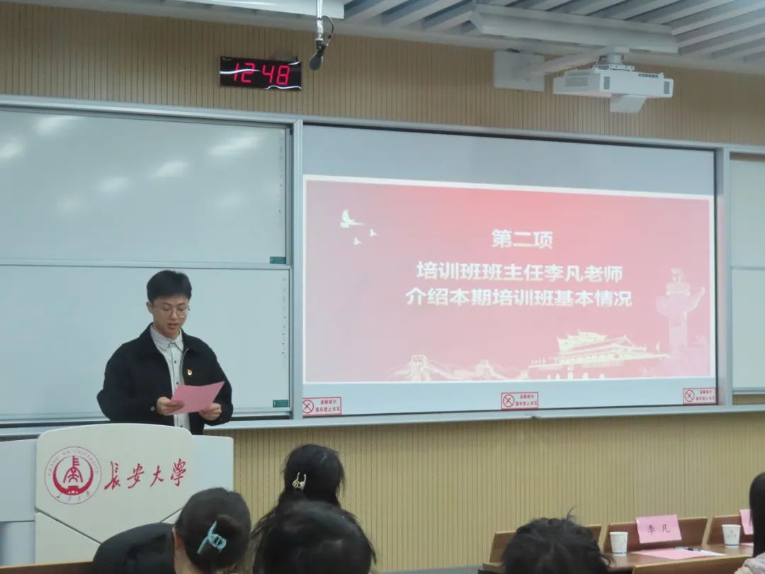 2025年3月27日,澳门新葡京平台 二级党校2025年春季入党积极分子培训班开班仪式暨培训党课第一讲于北校区WX2102 举行。澳门新葡京平台 党委书记贾侃、党委副书记王妍婷、学办副主任周艳龙、培训班班主任李凡及全体参训学员参加典礼。典礼由王妍婷主持。