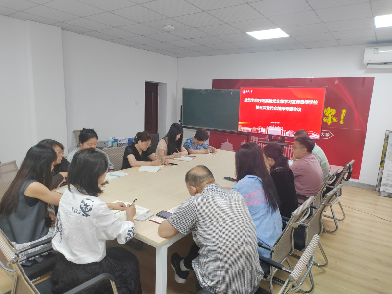 6月4日下午行政实验党支部在南校区西院建筑馆二楼会议室开展集中学习,深入学习宣传贯彻学校第五次党代会精神。支部全体党员参加会议,会议由支部书记洪诗迪主持。