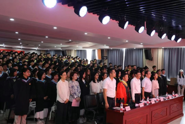 澳门新葡京平台 党委副书记王妍婷宣布毕业典礼开始,全体师生起立,奏唱国歌。