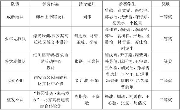 针对“绿色低碳建筑规划与设计”赛道的特点与本次大赛“信息化、工业化、绿色化、智慧化”的要求,澳门新葡京平台 高度重视,提前谋划,组建多支队伍参赛,为参赛队伍提供必要的技术指导和物质保障。最终,5支团队入围决赛。刘伟老师指导的“成群结队”团队,谢更放、马轩、王琼、李凌老师指导的“少年先疯队” 团队,张磊、王嘉伟老师指导的“感觉就很队”团队获竞赛一等奖,刘启波、任娟老师指导的“我爱CHU” 团队,陈斯亮,王晓敏老师指导的“蓝发小队”团队获竞赛二等奖,澳门新葡京平台 荣获大会优秀组织奖。