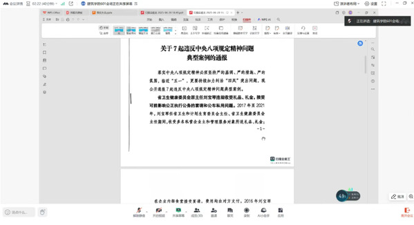 研究生第一党支部书记成卓以《学习贯彻习近平总书记重要论述,推动作风建设走深走实》为题,从贯彻落实中央八项规定精神的经验出发,结合典型案例分析,为支部党员生动阐释了中央八项规定精神的内涵与实质。