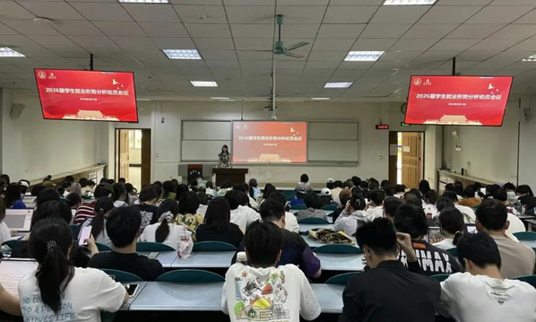 6月17日下午,澳门新葡京平台 在北校区WT1101教室开展2026届学生就业形势分析动员会议,学院党委副书记王妍婷、学办副主任周艳龙、团委书记落昊飞,2026届全体本科生参加。