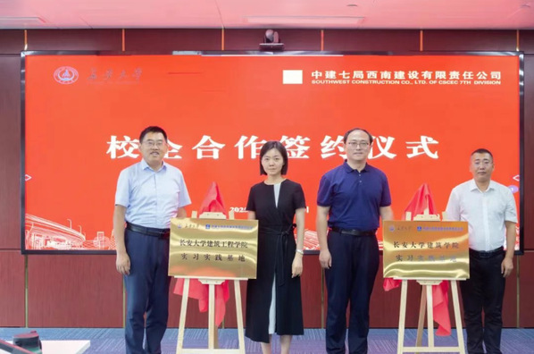 贾侃、吴涛分别与中建七局西南公司签署合作协议,共建“长安大学就业实习基地”。公司助理总经理、人力资源部(干部人事部)总经理赵艳玲提出精准人才输送、深化培养合作、互通科研交流三点期望;副总工程师南学飞聚焦行业痛点,呼吁校企共同破解“人才转化效率低、专业适配性不高、产学研衔接薄弱”等难题。校友代表韩秋石、赖凌莹分享成长经验,为母校教学优化改革建言献策。