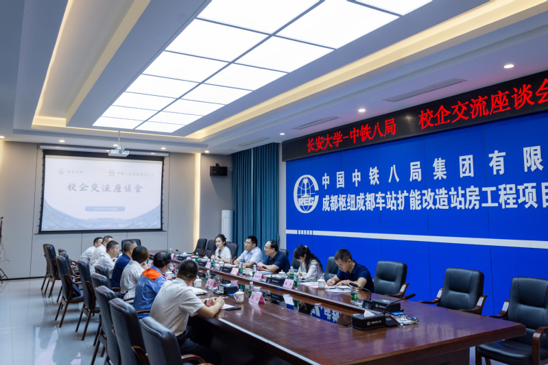 在中铁八局成都车站升级更新项目现场,工作组参观室内钢筋加工厂、“北站记忆”展厅、智慧展厅,听取项目负责人详细讲解城市更新改造项目实现的技术创新和克服的困难挑战。座谈会上,中铁八局人力资源部(党委干部部)副部长胡方平介绍了企业发展历程与“一专多”人才培养体系,提出“将企业精神融入学生培养”的校企联合育人愿景。贾侃、吴涛结合学院学生规模与专业布局,希望校企协同提高人才培养与产业需求的精准度和适配度;王妍婷、马熠航对学生群体呈现的新特征进行了分析,为进一步提升校企共同育人成效锚定方向。