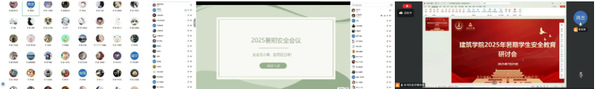 7月29日-7月30日澳门新葡京平台 全体辅导员组通过线上会议织全体学生分年级开展暑期安全教育。从防溺水、防诈骗、交通安全、人身安全、财产安全、食品安全、宿舍用电安全、心理健康教育、防范极端天气,防传染病、做好个人人身安全保护工作为内容展开,提升自身风险防范能力。