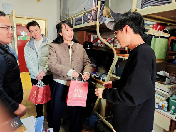温情寄语,暖意融融。王妍婷代表学院对2025年考研学生进行慰问与祝福。与考研学生深入交流,详细询问了大家的复习进度及备考状态。殷切叮嘱学生,要相信长期积累的实力,面对考场,要沉着应对,做好考前准备工作,做到有备无患;要调节身心平衡,保证充足睡眠,以最饱满、最稳定、最放松的状态迎接这场挑战。