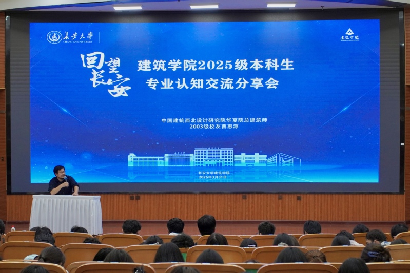 澳门新葡京平台 “回望长安”系列活动是深化产教融合、推进人才培养的重要品牌,多年来持续邀请校友与行业专家分享经验,为学子搭建起连接课堂与行业前沿的桥梁。为深入学习贯彻全国教育大会精神和习近平总书记关于教育的重要论述,落实长安大学新生教育工程,3月31日下午,学院在北校区图书馆西侧裙楼报告厅举办“回望长安”论坛(第八季)——本科生专业认知交流分享会第一期,帮助学生深化专业认知、明确发展方向。中国建筑西北设计研究院华夏院总建筑师、我院2003级校友曹惠源,学院党委副书记王妍婷,新生辅导员与2025级本科生参加,活动由王妍婷主持。
